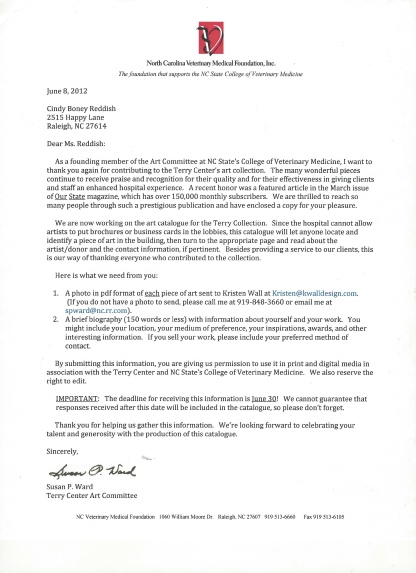 Letter of appreciation Susan Ward of the Terry Center Art Committee.